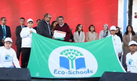 L’école Imam At-Tabari à Salé a célébré, ce vendredi, la cérémonie de levée du Pavillon Vert international pour l’environnement, la plus haute distinction attribuée dans le cadre du programme des Écoles Éco-responsables.Ce programme, piloté par le ministère de l’Éducation nationale, du Préscolaire et des Sports en partenariat avec la Fondation Mohammed VI pour la Protection de l’Environnement, vise à intégrer l’éducation environnementale au sein des établissements scolaires. Il permet également aux élèves de développer des projets écologiques concrets basés sur des axes principaux : gestion des déchets, économie de l’eau, réduction de la consommation énergétique, alimentation saine et préservation de la biodiversité.La cérémonie a également été marquée par la remise des distinctions nationales du programme — Eau, Énergie et Gestion des déchets — ainsi que par l’annonce des résultats du concours international « Jeunes Reporters pour l’Environnement » pour l’année scolaire 2024/2025, en présence de représentants de l’Académie Régionale d’Éducation et de Formation (AREF) de Rabat-Salé-Kénitra, d’acteurs éducatifs et de nombreux élèves.Meriem Khaddari, responsable des programmes d’éducation environnementale à la Fondation Mohammed VI pour la Protection de l’Environnement, a rappelé que la Fondation œuvre depuis plus de vingt ans pour impliquer les enfants et les jeunes dans la protection de leur environnement. Elle a révélé que 1 200 écoles ont présenté leurs candidatures pour l’année scolaire 2024/2025 afin d’obtenir l’une des trois distinctions du programme, en travaillant sur un ou plusieurs axes thématiques.Elle a précisé que les jurys national et régional se sont appuyés sur l’étude des dossiers et les visites de terrain pour évaluer les établissements participants, en mettant l’accent sur l’implication des élèves et l’adéquation des projets avec les Objectifs de Développement Durable. Les résultats ont permis à l’AREF Rabat-Salé-Kénitra d’obtenir 23 Pavillons Verts, 32 certificats d’argent et 22 certificats de bronze.Dans le cadre du concours « Il était une fois une école éco-responsable », 40 vidéos ont été reçues, dont 12 ont été sélectionnées, représentant quatre académies. Ces résultats ont permis de récompenser 71 élèves, 12 encadrants et 12 directeurs, parmi lesquels plusieurs établissements de la région Rabat–Salé–Kénitra.De son côté, Mohamed Aouaj, directeur de l’AREF Rabat-Salé-Kénitra, a salué les efforts déployés dans les établissements scolaires pour promouvoir l’éducation environnementale et le développement durable. Dans un discours lu en son nom par le directeur provincial de Salé, Rachid Agribi, il a souligné que l’académie œuvre, en partenariat avec le ministère et les acteurs concernés, à la mise en œuvre du programme des Écoles Éco-responsables, conçu pour intégrer la culture environnementale dans la vie scolaire et renforcer les valeurs de citoyenneté écologique chez les élèves.Aouaj a également mis en avant les résultats remarquables obtenus par l’académie au titre de l’année scolaire 2024/2025, avec 81 établissements engagés dans le programme : 26 ont obtenu le Pavillon Vert, 33 le certificat d’argent et 22 le certificat de bronze. Plusieurs élèves et établissements ont également été distingués aux niveaux national et international dans diverses compétitions environnementales.Concernant le programme « Jeunes Reporters pour l’Environnement », le directeur a indiqué que près de 70 productions ont été soumises, dont trois ont été primées au niveau national dans les catégories reportage et photographie, soulignant que ces distinctions reflètent le dynamisme des établissements et leur engagement dans le projet éducatif vert.Pour sa part, Youssef Essouibra, chargé des activités environnementales et du développement durable au ministère, a affirmé que ce programme vise à renforcer les comportements écologiques responsables au sein des écoles, conformément aux orientations nationales de réforme du système éducatif, notamment la loi-cadre 51.17 et la feuille de route 2022-2026 visant à instaurer une véritable renaissance éducative.